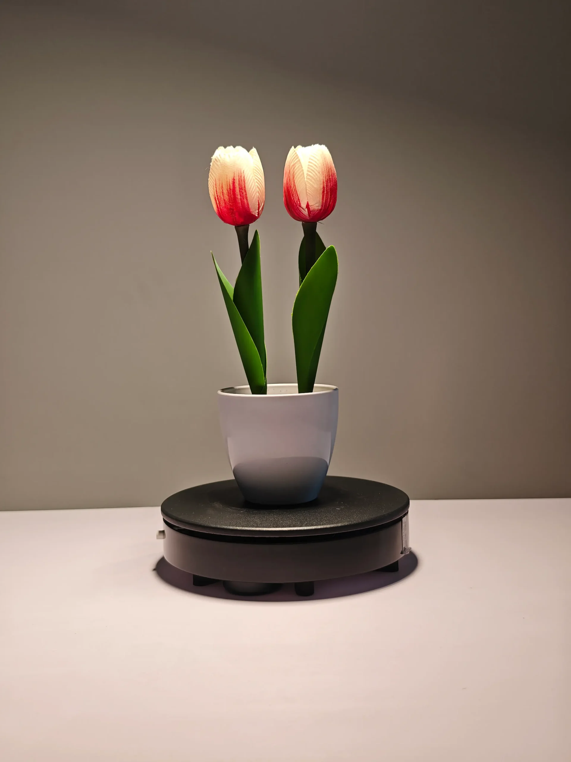 Supple premium artificial potted flowers in new trend arrival. A stunning mini Artificial Tulips , arranged in 35cm height, with White Ceramic Pot (Customization Available).