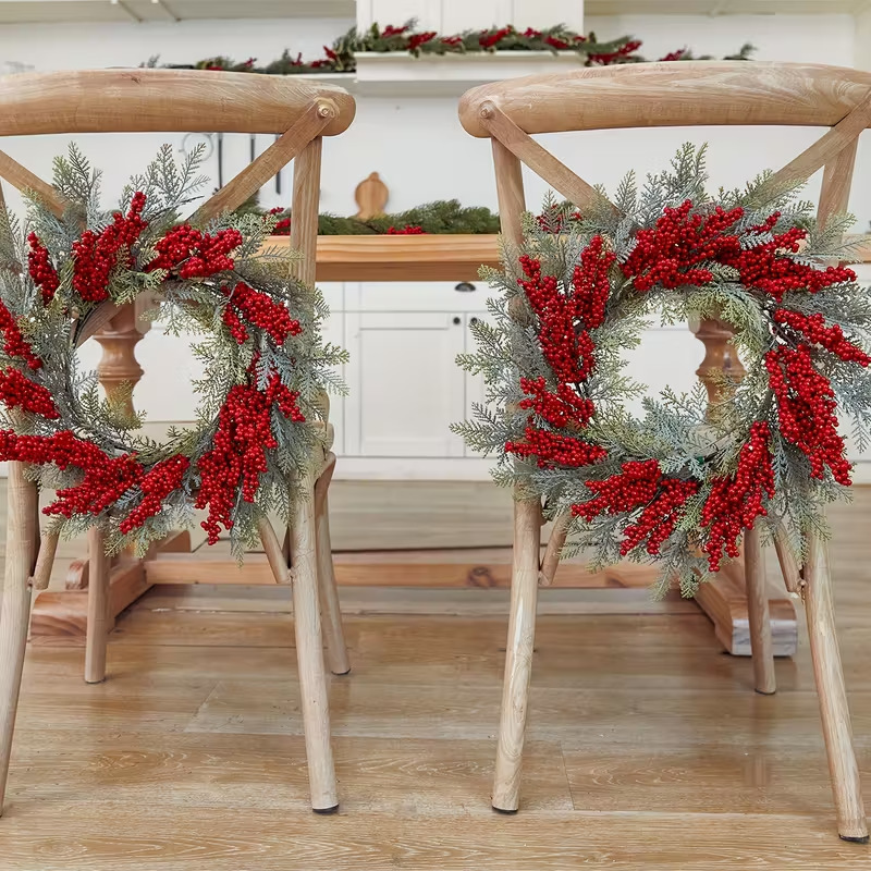 Next, elevate your home entrance with our classic Christmas wreaths. We fill every wreath with shiny red berries, textured pinecones and soft decorative bows. You can pick golden styles for a luxurious look or choose pure red designs for traditional holiday warmth, and both options make your front door welcoming and stylish at a glance. 💫