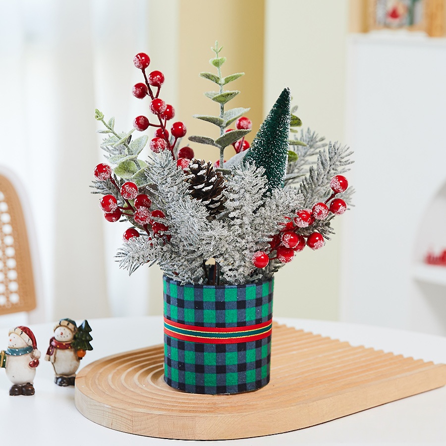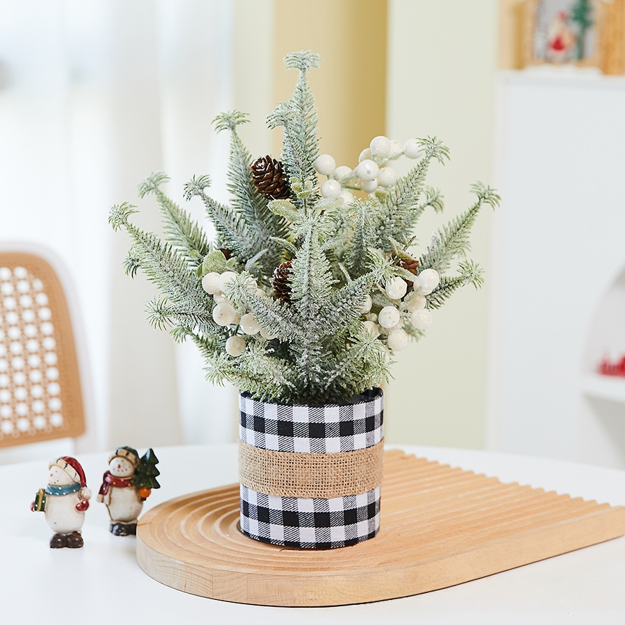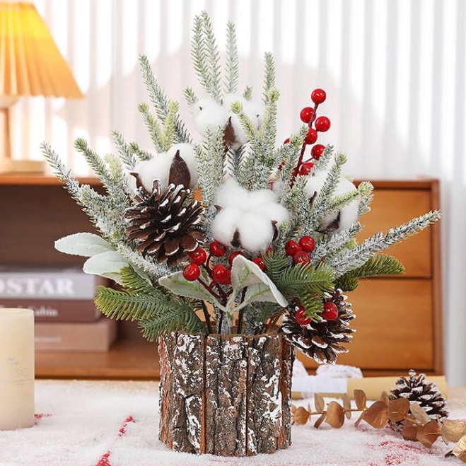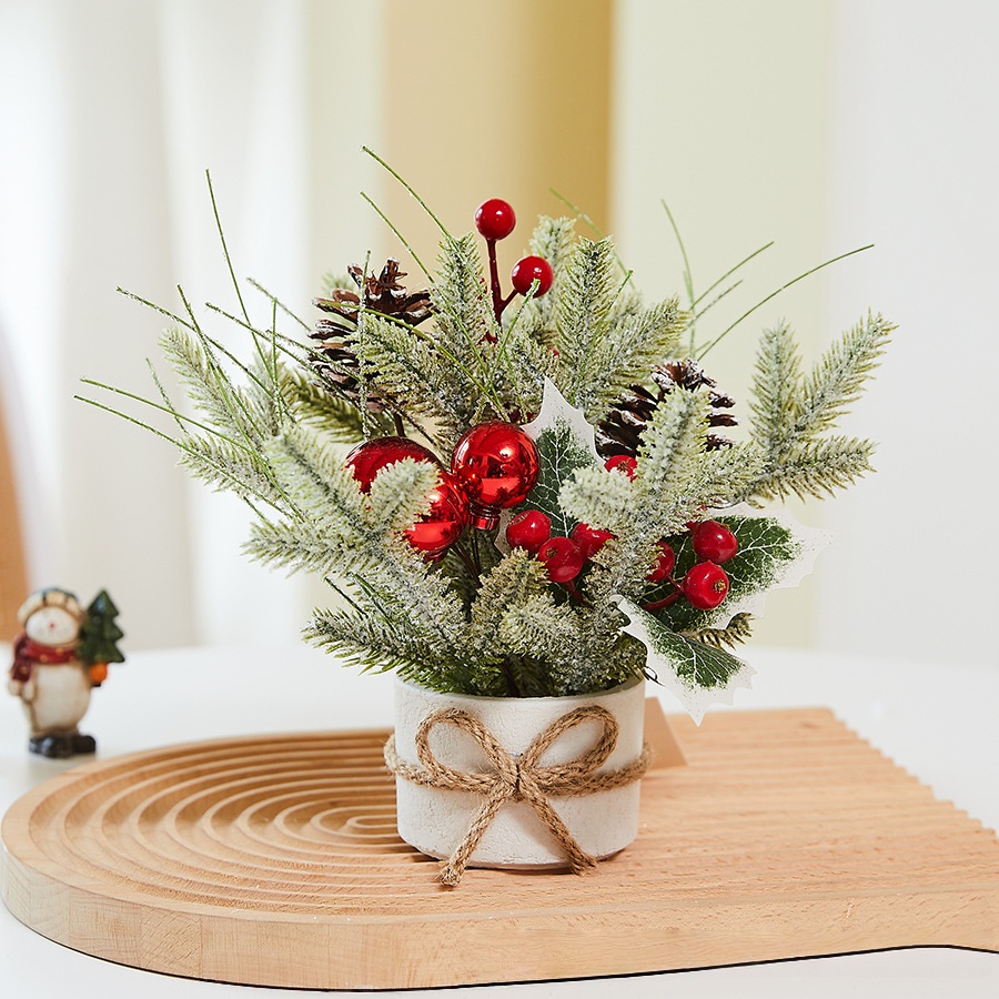 Then, add cozy tiny decor to your indoor corners with our mini snow-covered trees. We coat each small tree with soft artificial snow and decorate it with bright berries and delicate ornaments. The rustic burlap base brings extra warmth, and it fits perfectly on desks, shelves, fireplaces and dining tables.