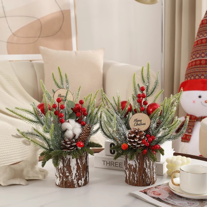 Then, add cozy tiny decor to your indoor corners with our mini snow-covered trees. We coat each small tree with soft artificial snow and decorate it with bright berries and delicate ornaments. The rustic burlap base brings extra warmth, and it fits perfectly on desks, shelves, fireplaces and dining tables.