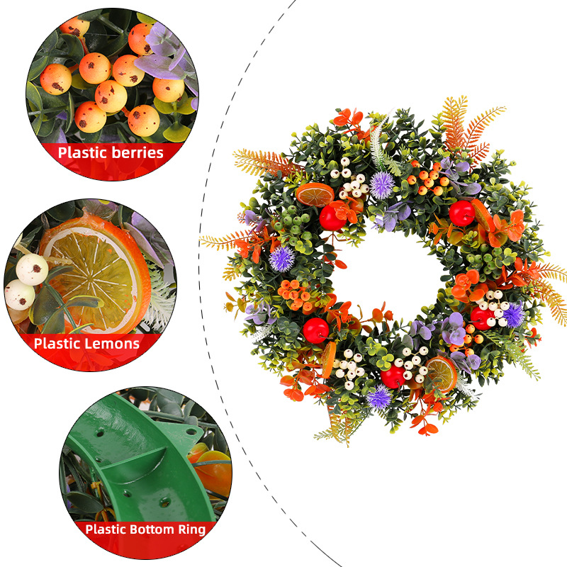 Artificial Citrus & Berry Fall Wreath | Eucalyptus Harvest Front Door Decor