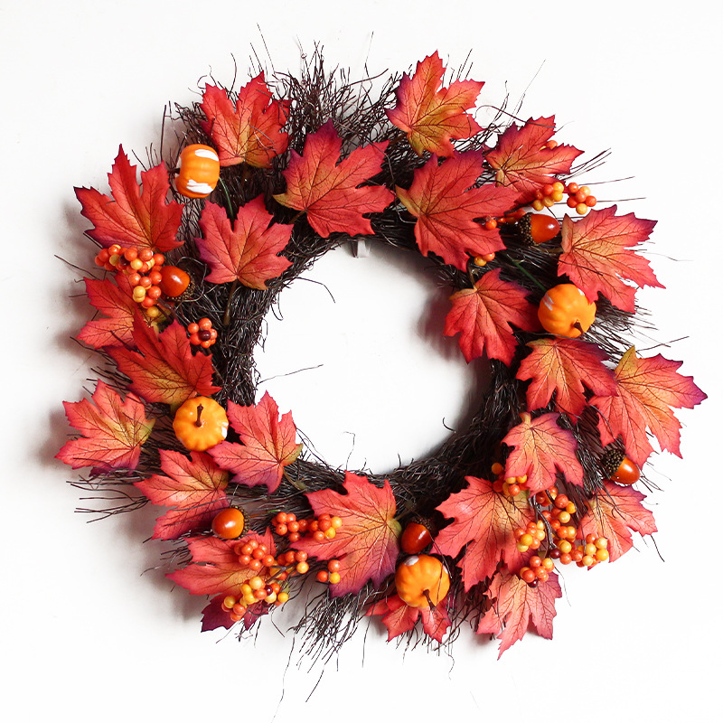 • Material: High-quality UV-resistant synthetic maple leaves, pumpkins, berries, and acorns on a durable twig base