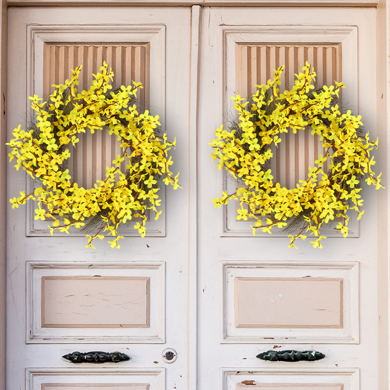 Artificial Forsythia Wreath | Bright Yellow Spring Front Door Decor