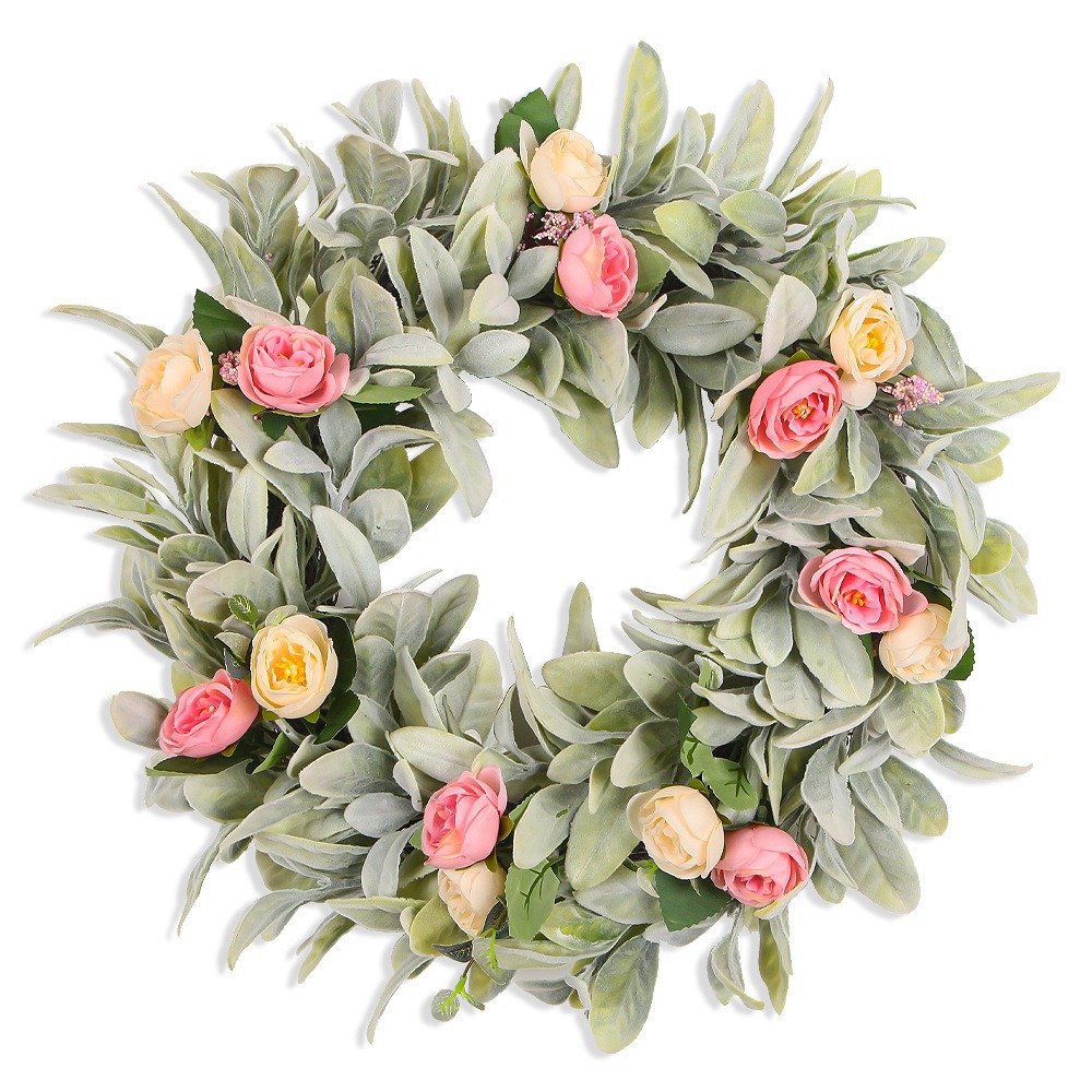 Artificial Lambs Ear Rose Wreath | Blush Pink Year-Round Front Door Decor