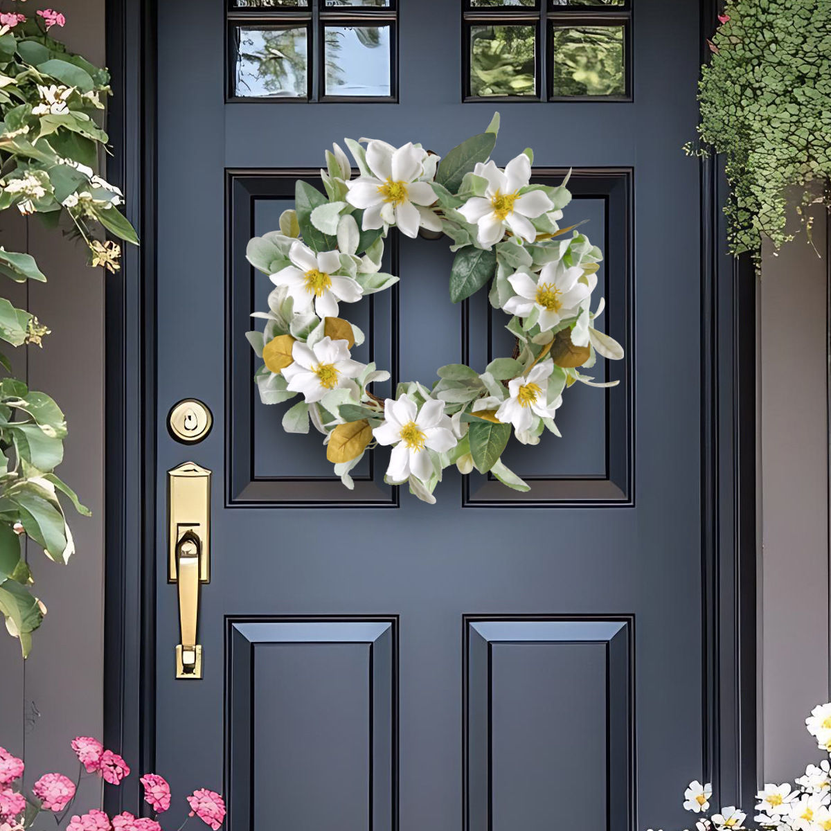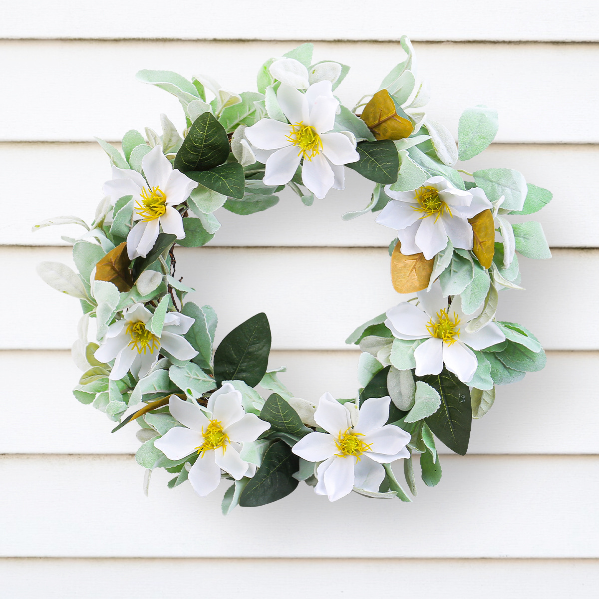 Artificial White Magnolia Wreath | Lambs Ear Year-Round Front Door Decor