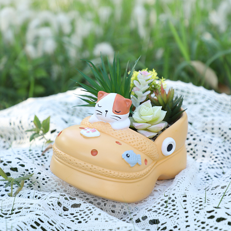 Cute Cartoon Planters with Artificial Succulents & Plants 🐱🐶🌸