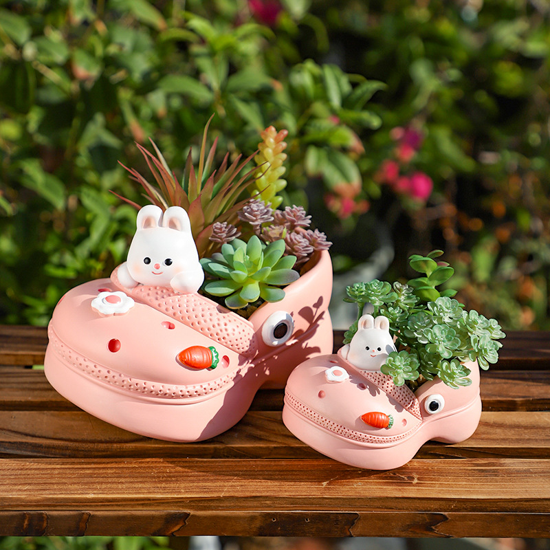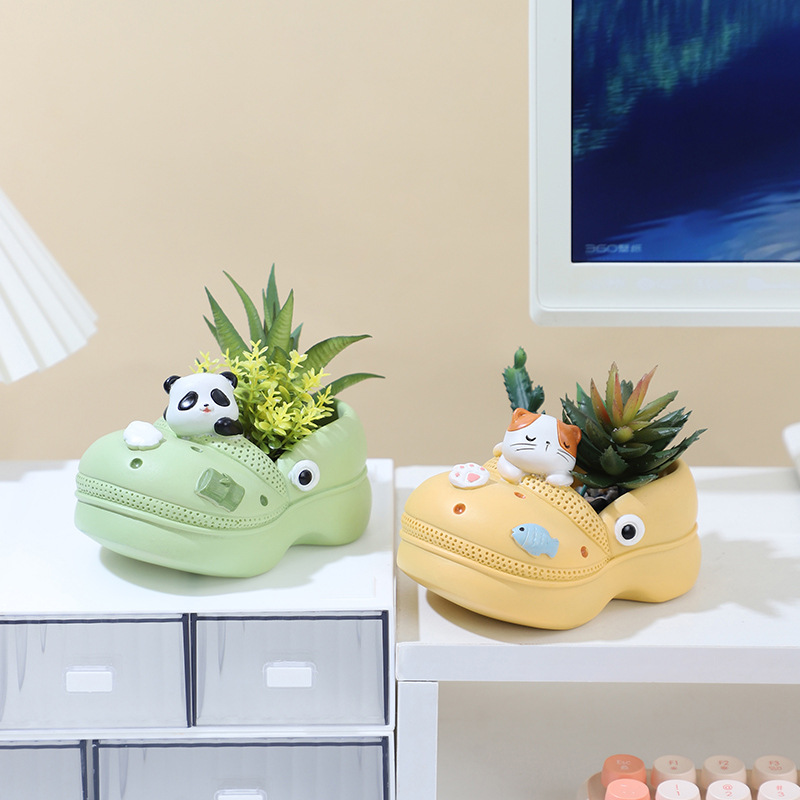 Cute Animal Croc Resin Succulent Planter Set | 4-Piece Kawaii Panda, Cat, Dog & Bunny Shoe Plant Pots