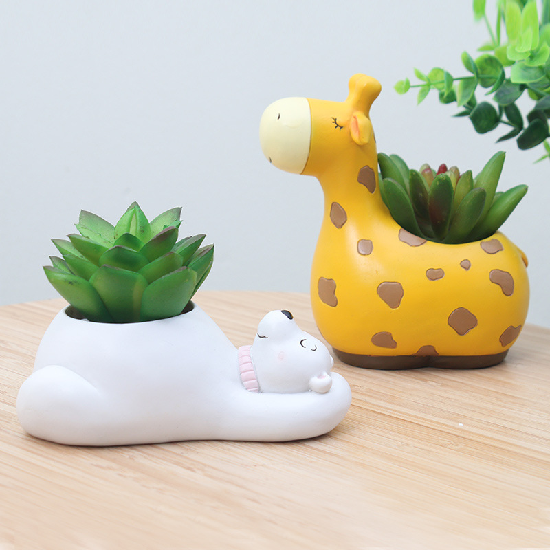 Cute Animal Resin Succulent Planters | Giraffe Panda Chicken Home Decor Pots