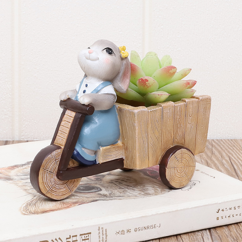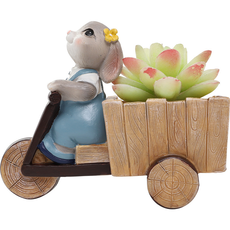 Bring a playful, whimsical charm to your home or garden with this adorable 4-piece set of bunny-themed resin planters! Each pot features a hand-painted, charming rabbit in a fun, unique pose: a bunny pushing a wooden cart, a bunny riding a tricycle, a bunny climbing a boat-shaped pot, and a bunny relaxing in a leaf boat. Crafted from durable, high-quality resin, these pots are perfect for growing small succulents, cacti, or air plants, and make the cutest desk decor, windowsill accent, or gift for plant lovers and bunny enthusiasts.