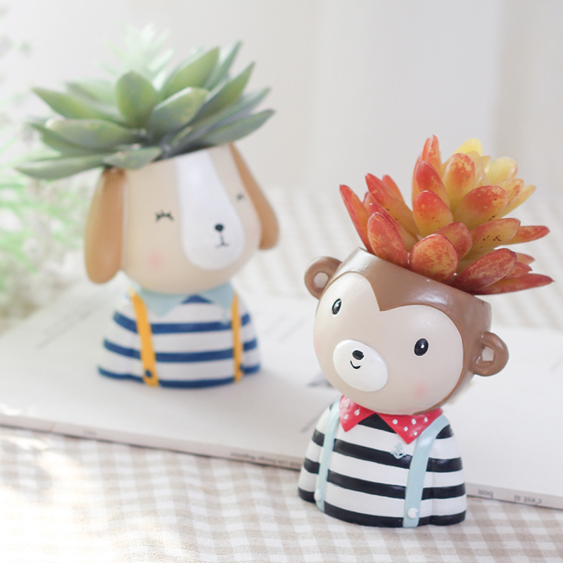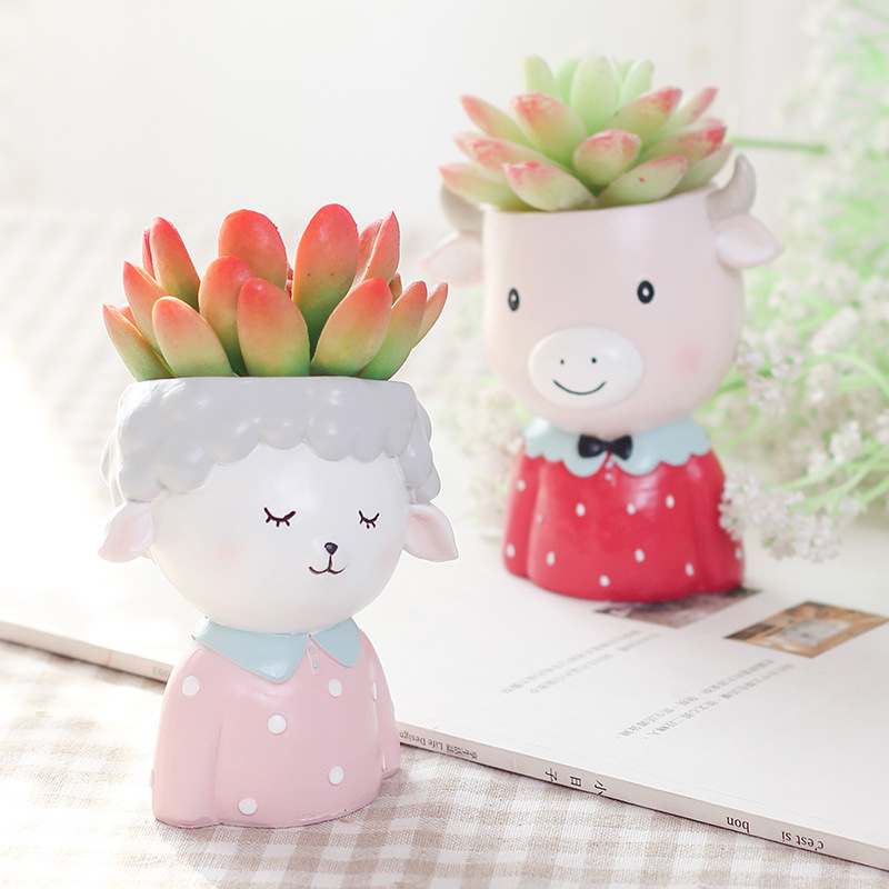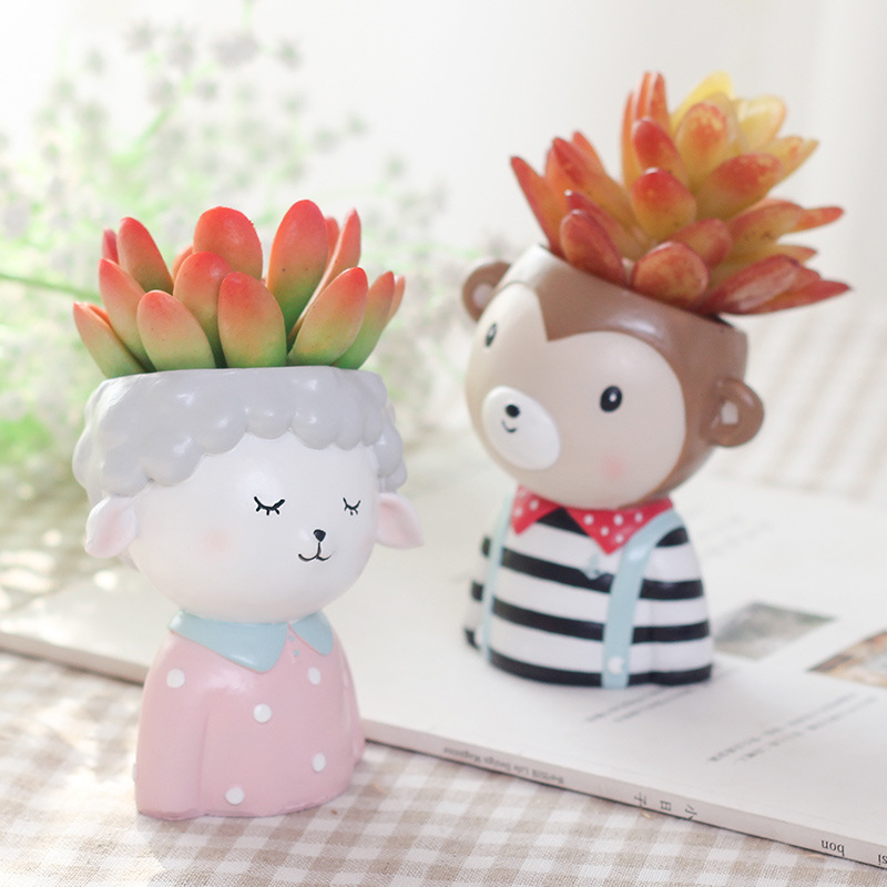 Cute Cartoon Animal Resin Succulent Planters | Kawaii Sheep Dog Cow Monkey Decor Pots