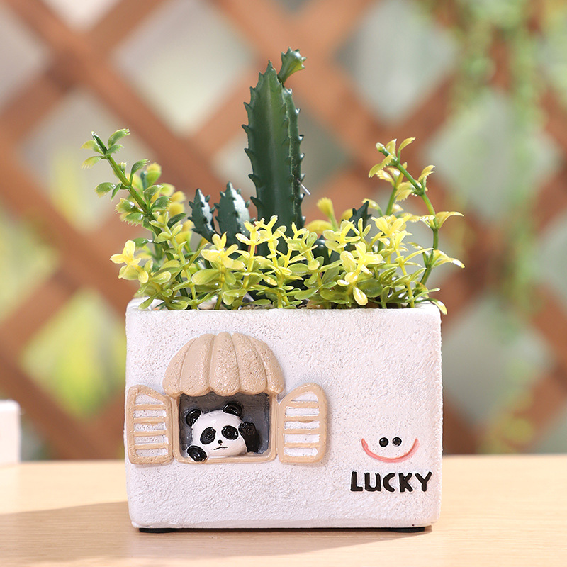Cute Cartoon Planters with Artificial Succulents & Plants 🐱🐶🌸