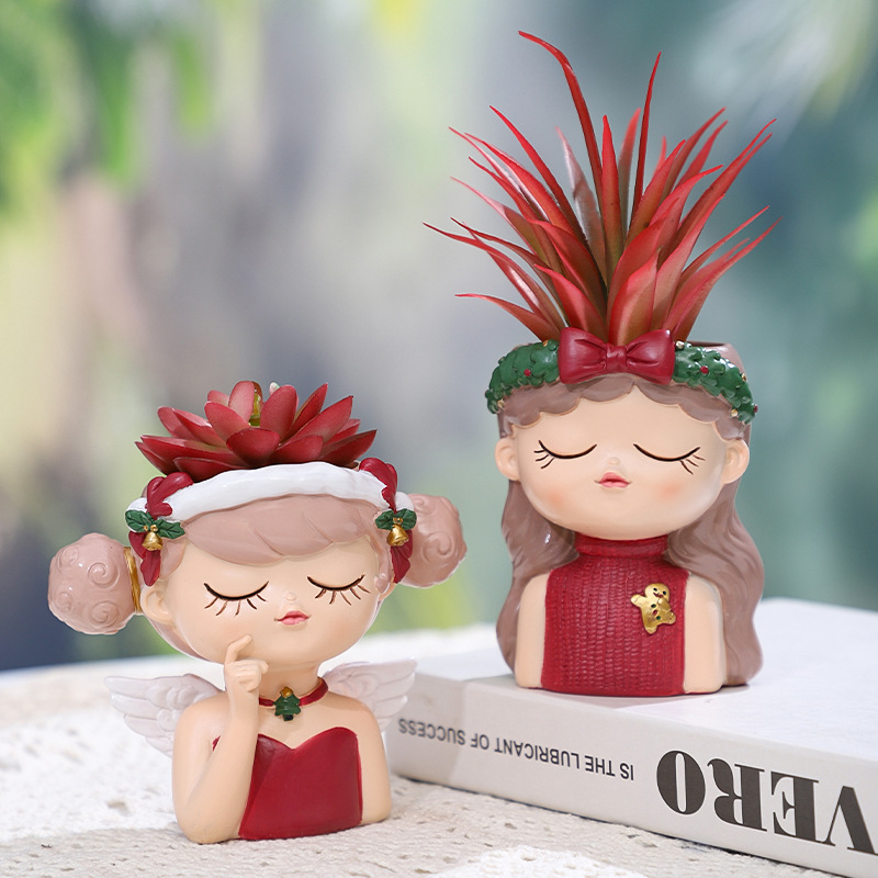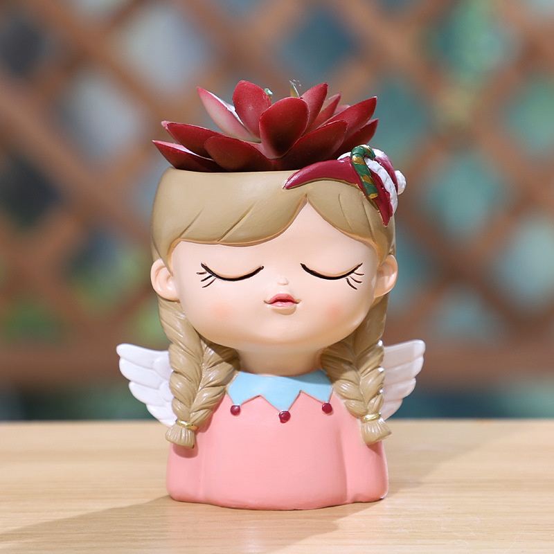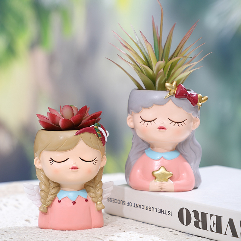 Cute Girl Resin Planter Set | Charming Desktop & Windowsill Pot with Positive Accents
