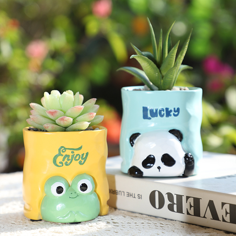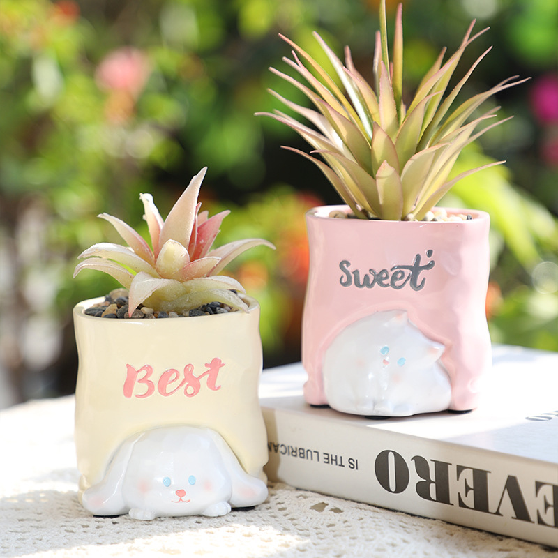 Cute Cartoon Planters with Artificial Succulents & Plants 🐱🐶🌸