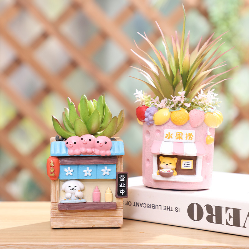 Cute Cartoon Planters with Artificial Succulents & Plants 🐱🐶🌸