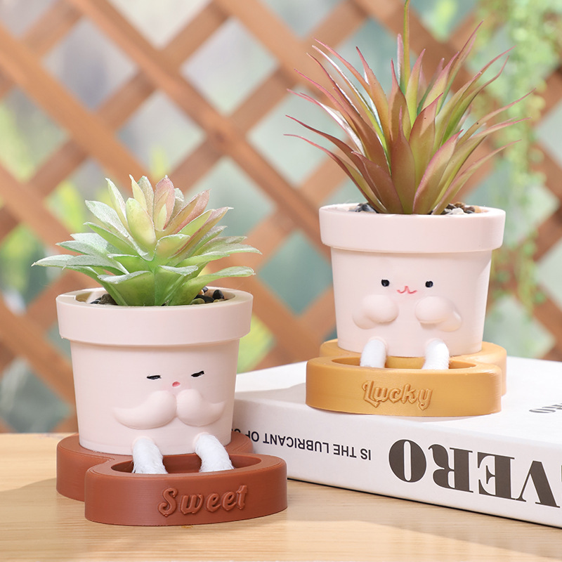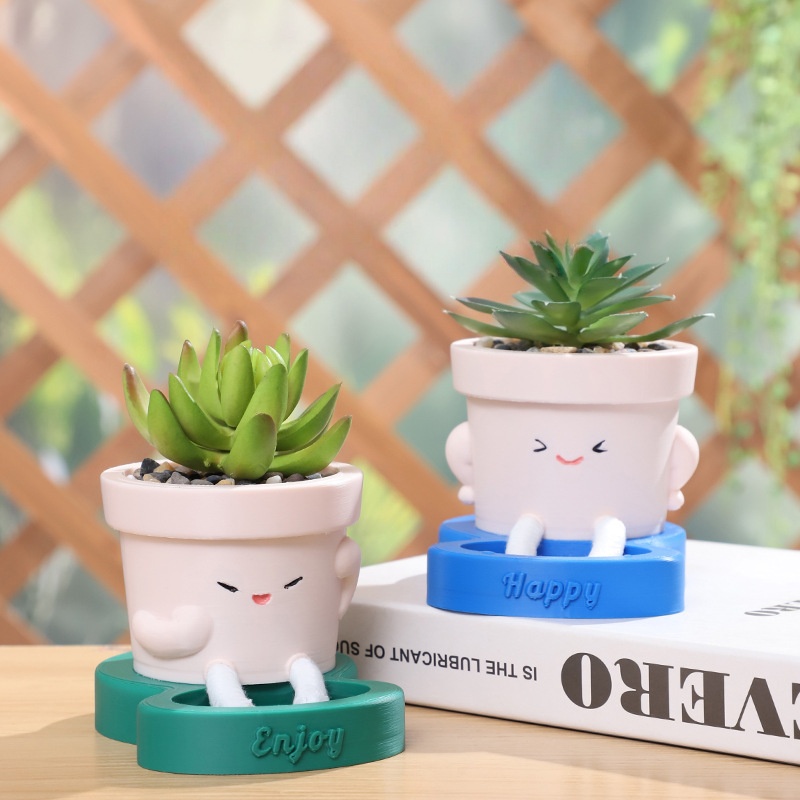 • Features: Cute 3D facial expressions, 3D “leg” details, engraved positive words, compact size, drainage hole for healthy plant growth, fade-resistant