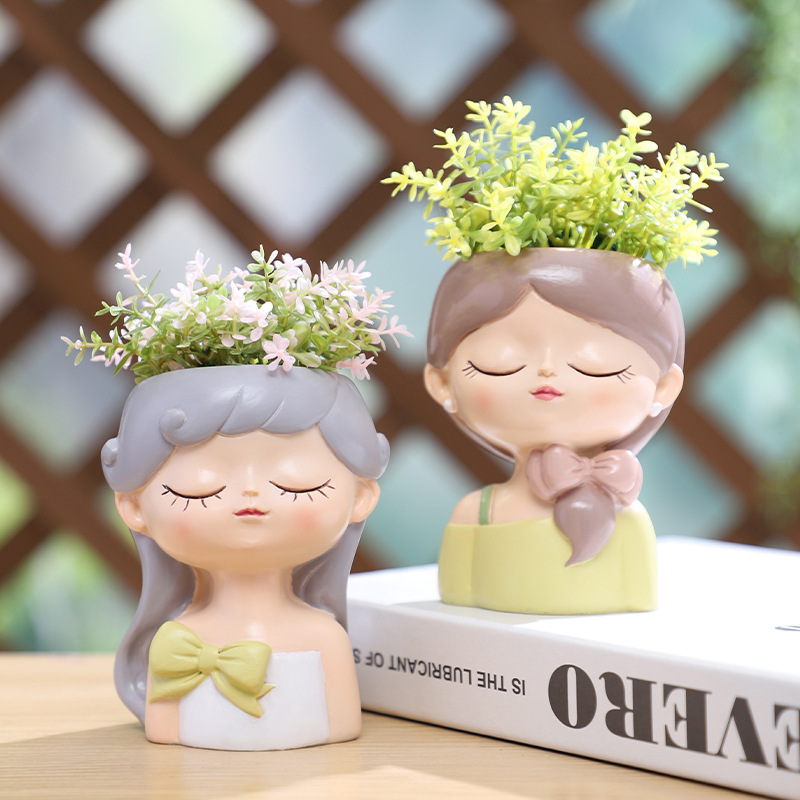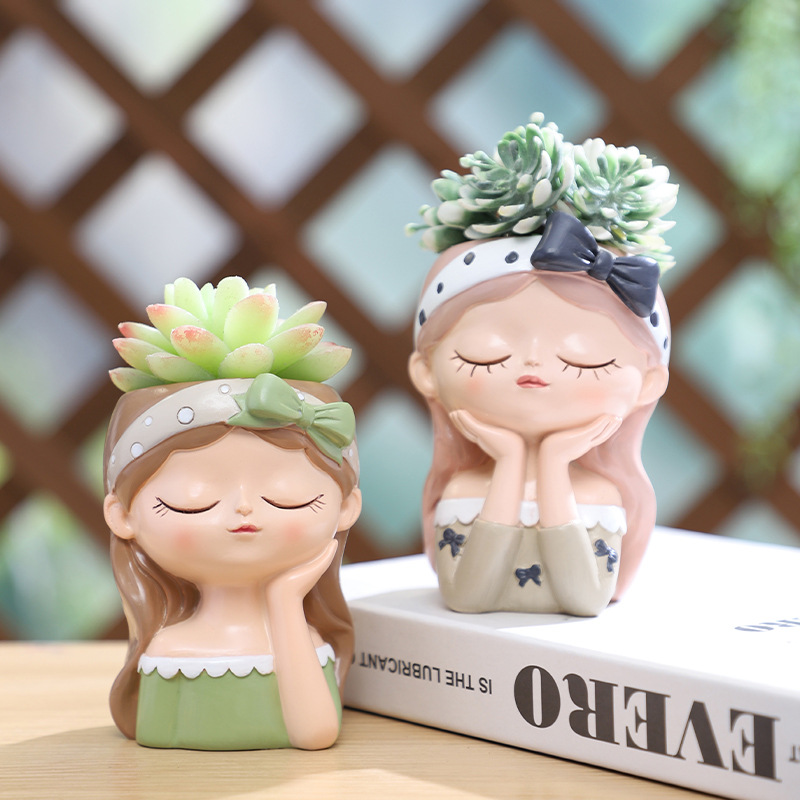 Add a dreamy, whimsical touch to your succulent display with this adorable set of kawaii girl resin planters! Each pot is hand-painted to look like a cute, sleeping girl with closed eyes, soft features, and stylish hair accessories (bows, headbands, hair ties) in pastel colors. Crafted from durable, high-quality resin, these pots are perfect for growing small succulents, cacti, or air plants, and make the sweetest desk, windowsill, or bedroom decor accent, as well as a thoughtful gift for plant lovers and kawaii decor fans.