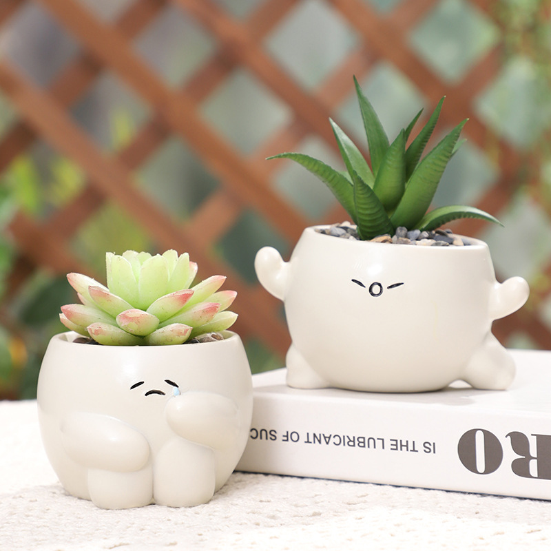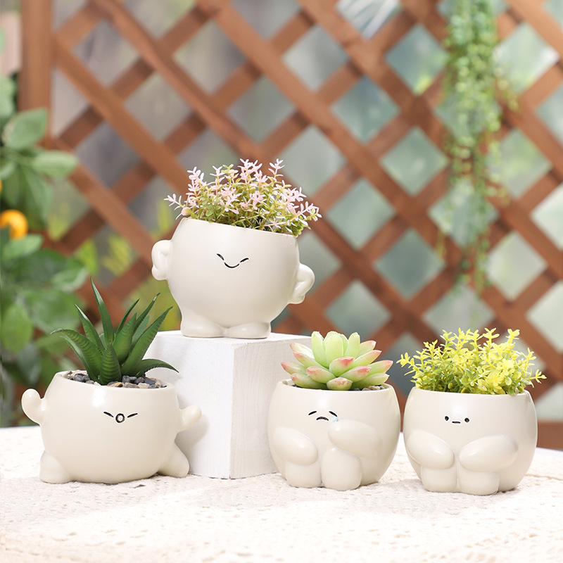 Bring playful, expressive charm to your succulent display with this adorable set of mood-themed resin planters! Each pot is hand-painted to look like a cute, chubby character with a unique emotion: a happy smile, a surprised “O” face, a shy cry, and a calm neutral look, all with soft, rounded shapes and tiny limbs. Crafted from durable, high-quality resin, these pots are perfect for growing small succulents, cacti, or air plants, and make the sweetest desk, windowsill, or patio decor accent, as well as a thoughtful gift for plant lovers and kawaii decor fans.