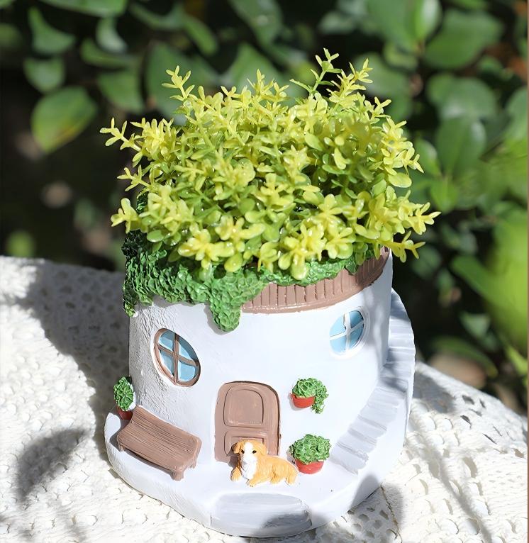 Cute Cartoon Planters with Artificial Succulents & Plants 🐱🐶🌸