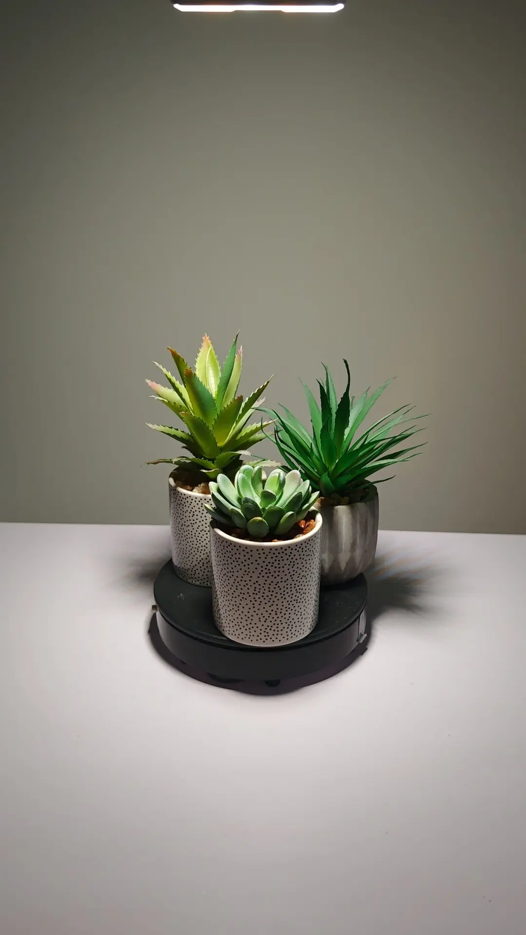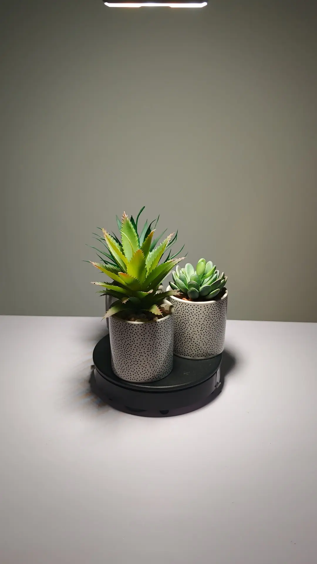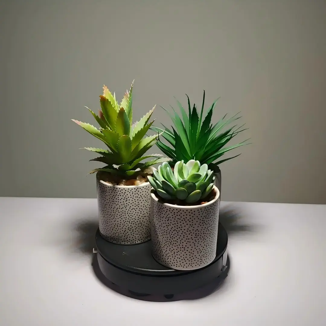 Supple fake succulent centerpiece in new trend arrival. A stunning Artificial Plant for Decoration, arranged in 7-10cm height, with Polka-Dot Ceramic Pots.