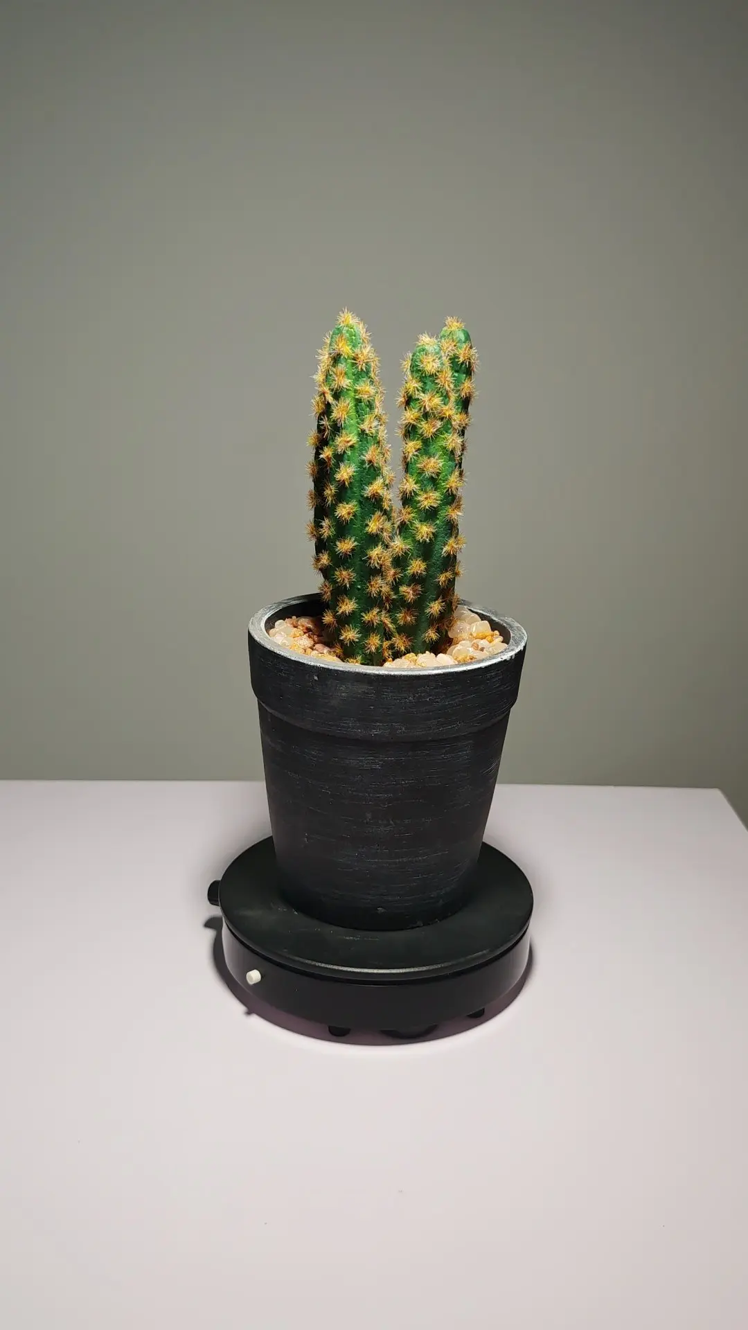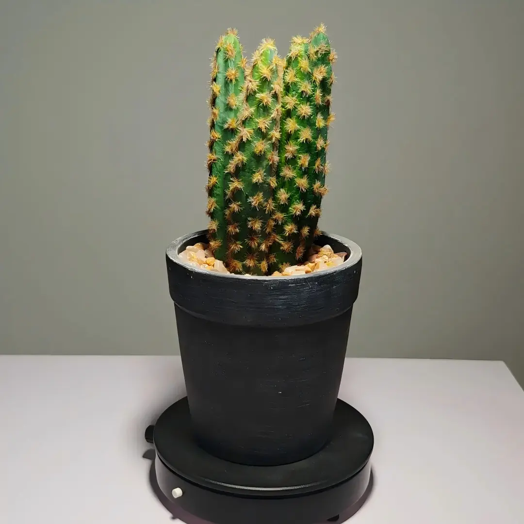 Supple fake succulent centerpiece in new trend arrival. A stunning Artificial Golden-Spined Multi-Stem Cactus Plant for Home Decor, arranged in 35cm height, with Black Stone-Topped Pot.