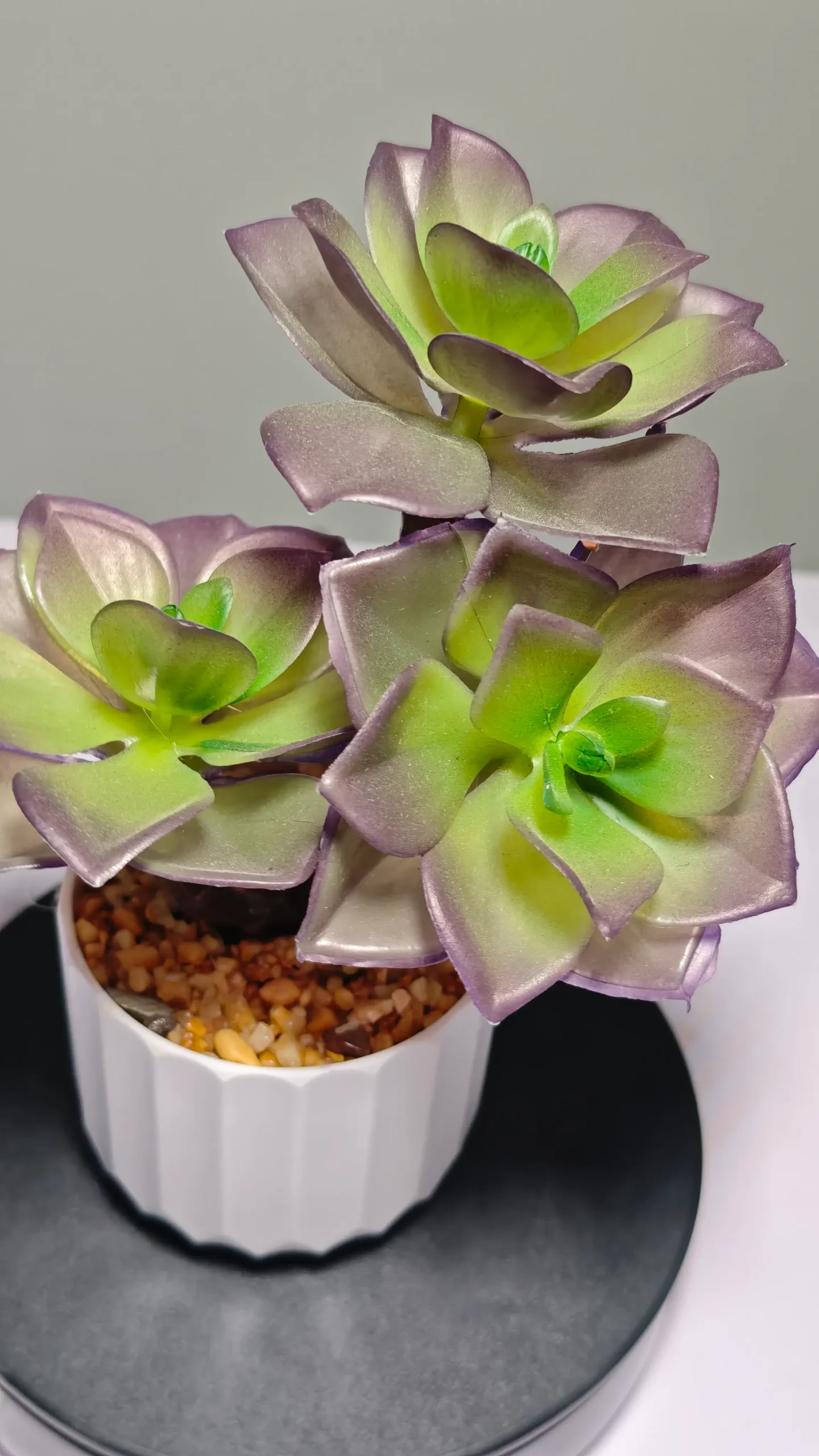 🌸Arrangement with Shimmering Purple-Green Faux Succulent