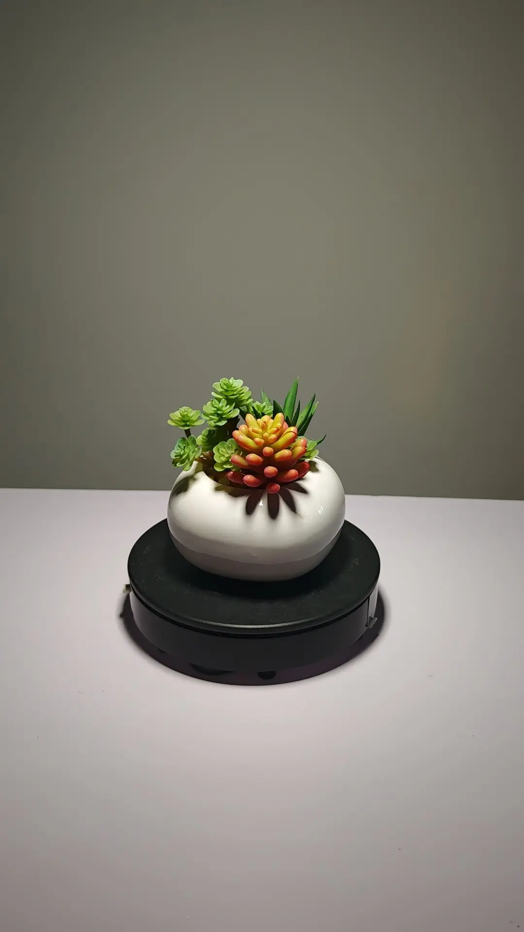 Supple fake succulent centerpiece in new trend arrival. A stunning Mixed Succulents, arranged in 13cm height, with Rounded White Pot .