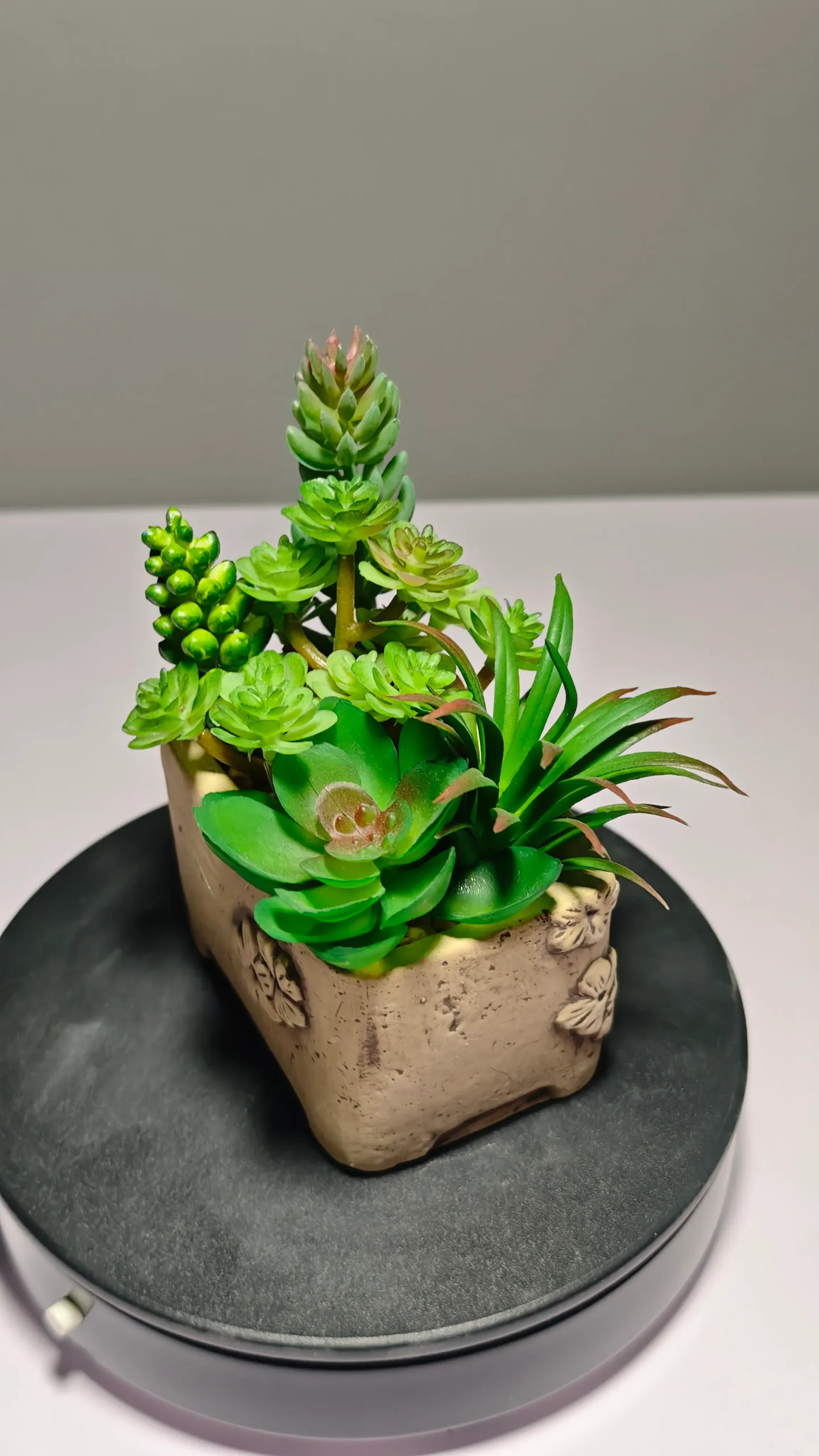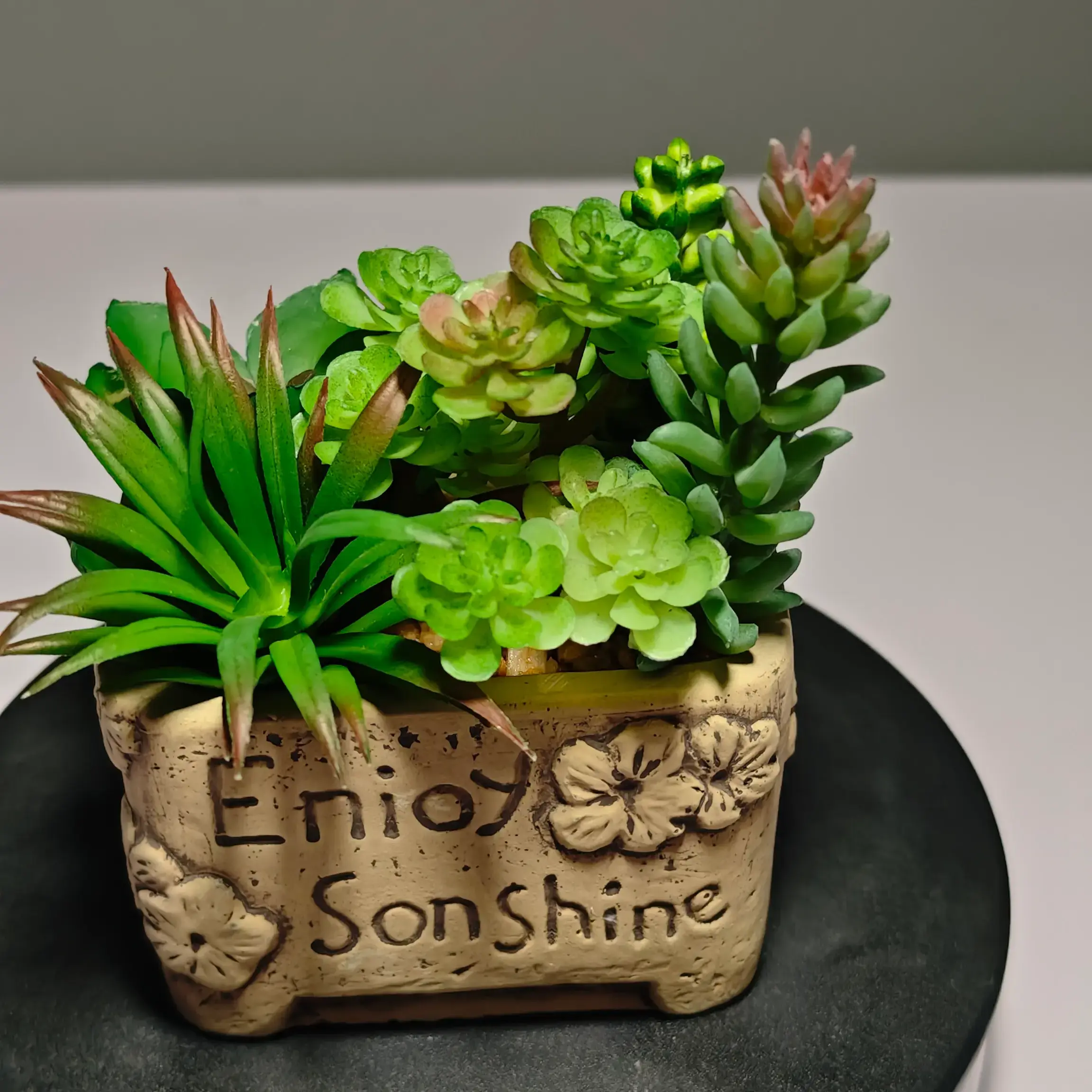 Supple fake succulent centerpiece in new trend arrival. A stunning Mixed Lush Succulents, arranged in 15cm height, with Embossed Pot.