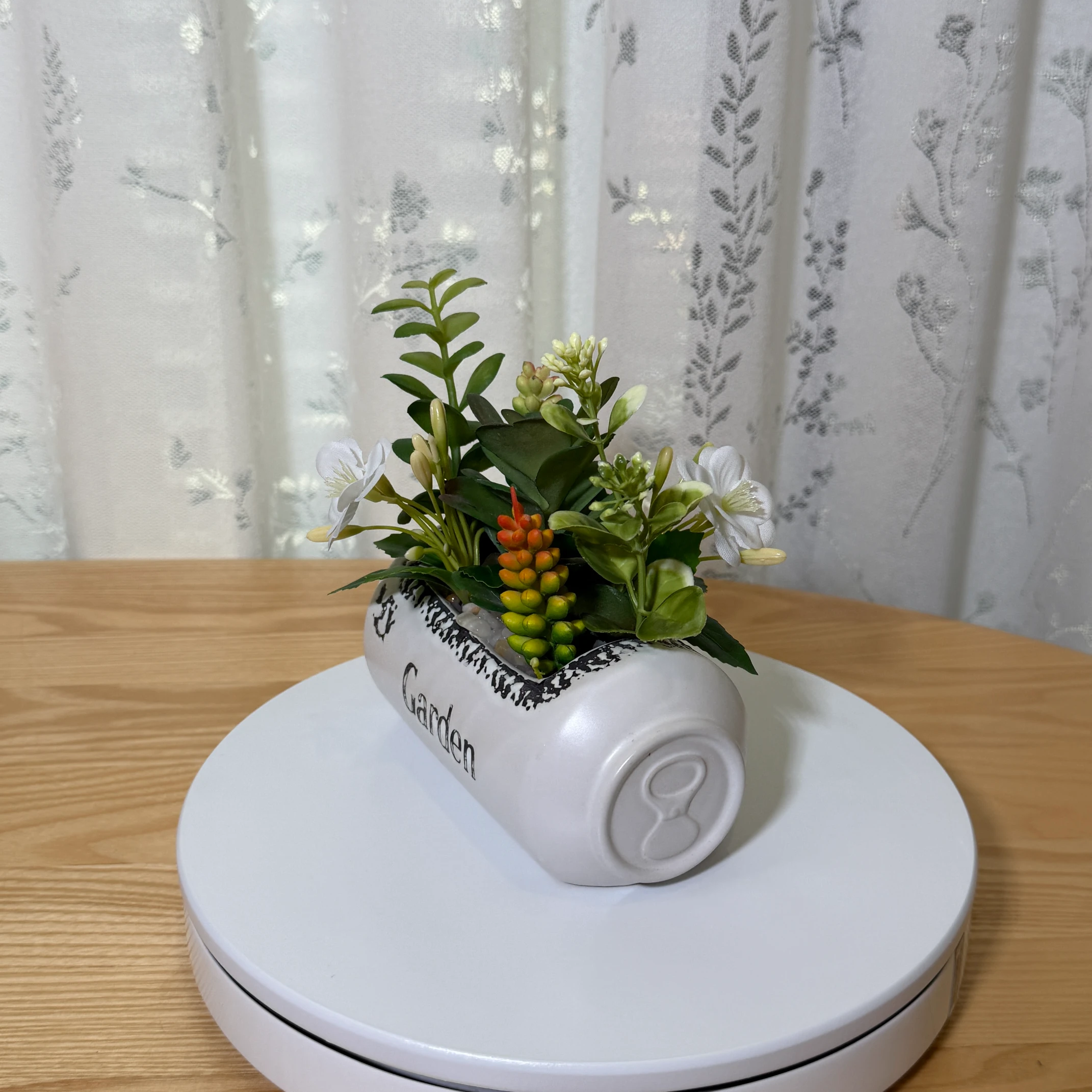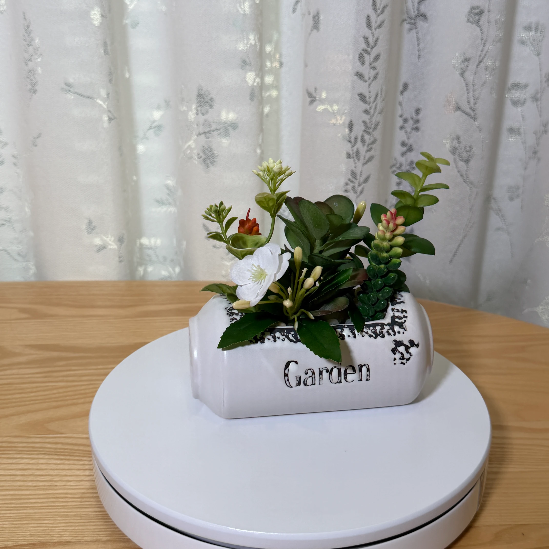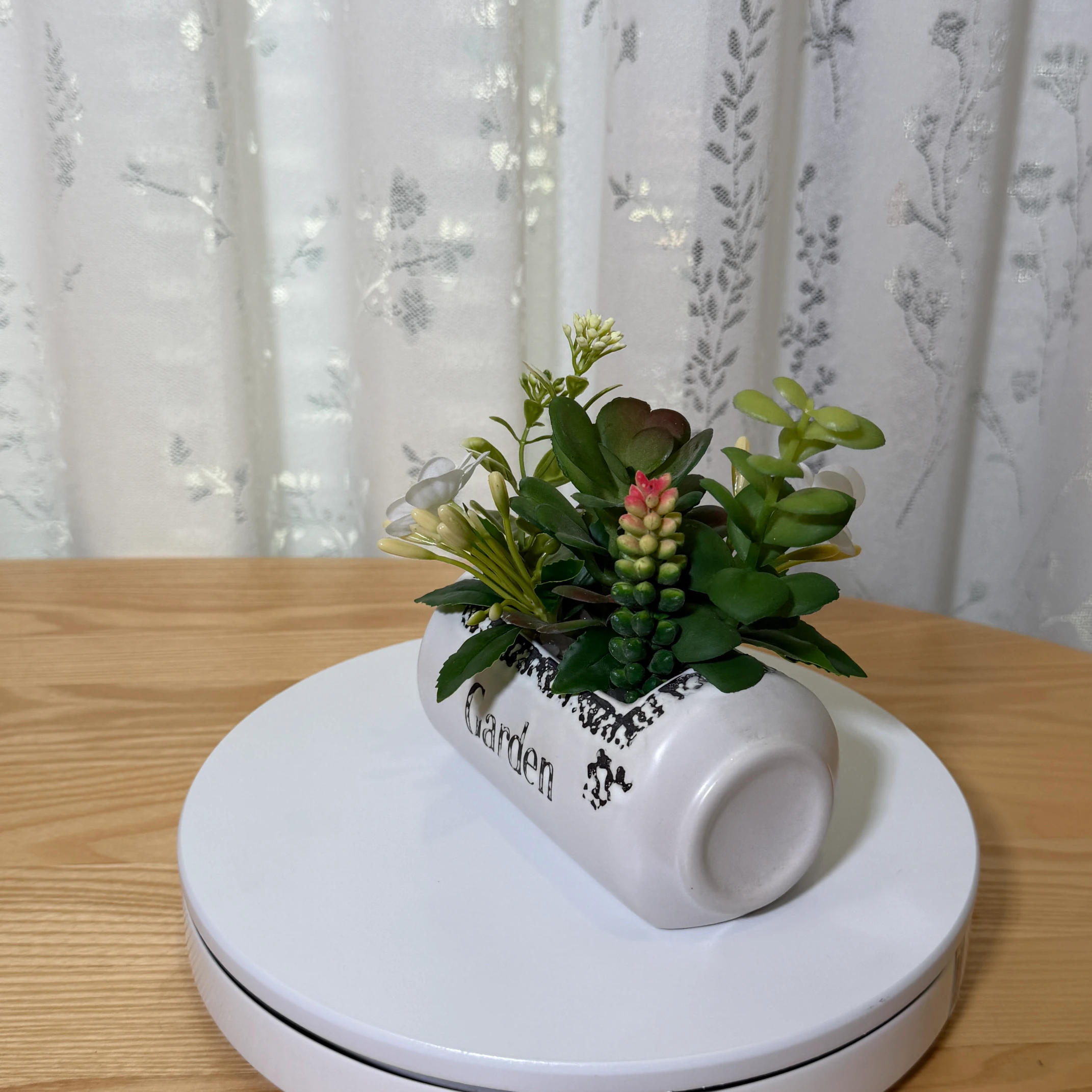 - Materials: High-quality plastic + Ceramic pot + White stone fillers