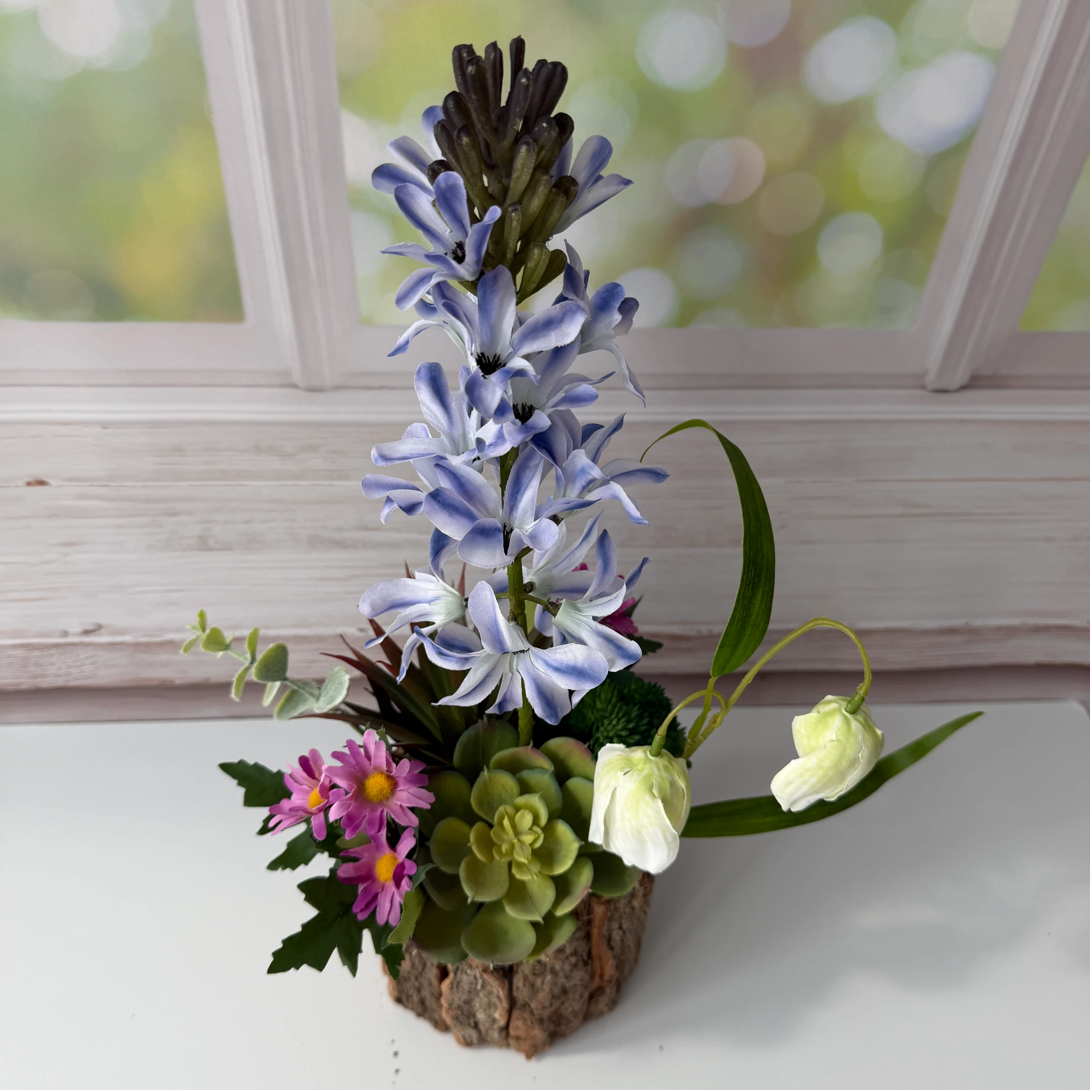 First off, each arrangement features authentic, season-specific flowers. From spring hyacinths and daffodils to summer lavender and iris, every detail mimics the look and feel of fresh, live blooms.