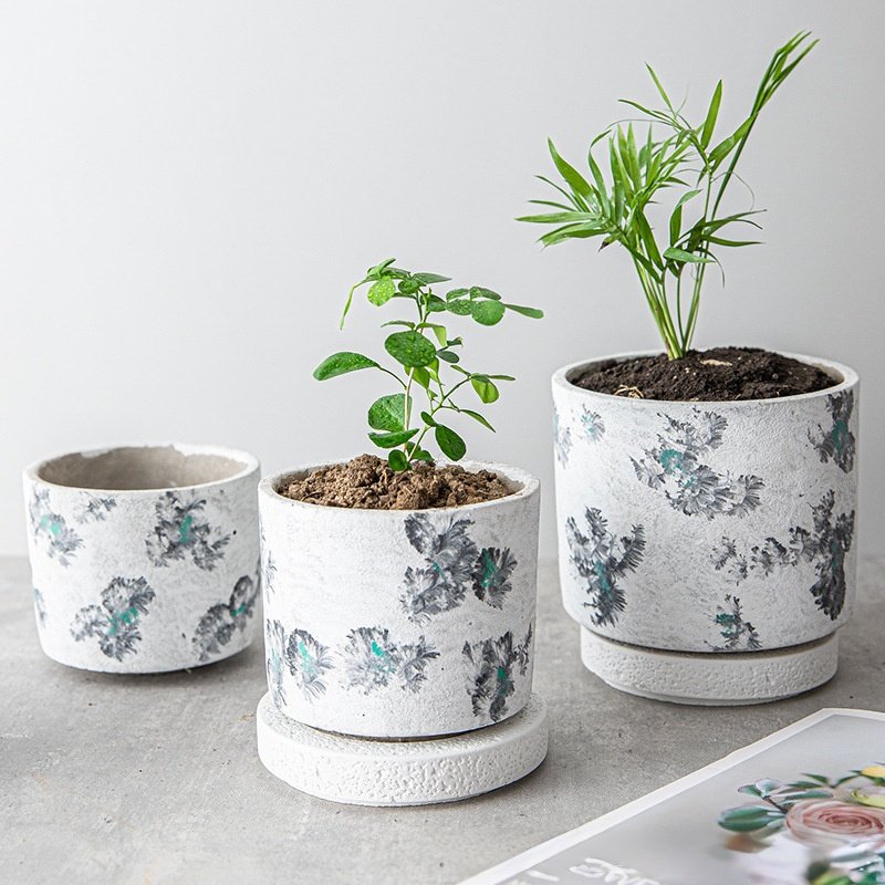 Floral-Print Concrete Planter Set | Modern Botanical Style