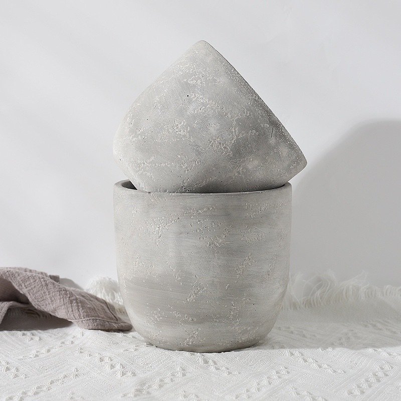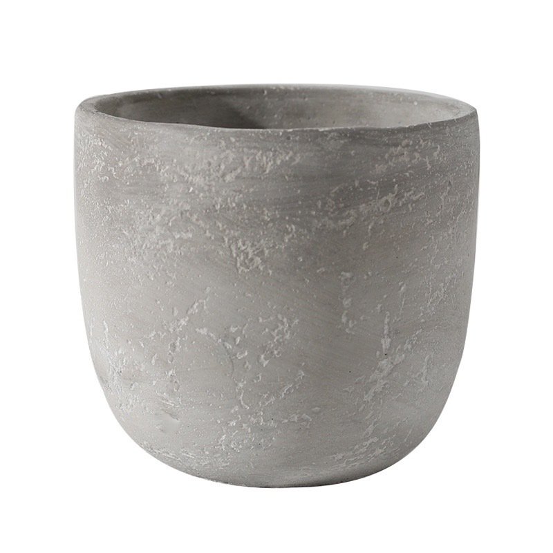 This minimalist planter features a rounded, bowl-shaped design crafted from weathered concrete, perfect for a raw, industrial aesthetic.