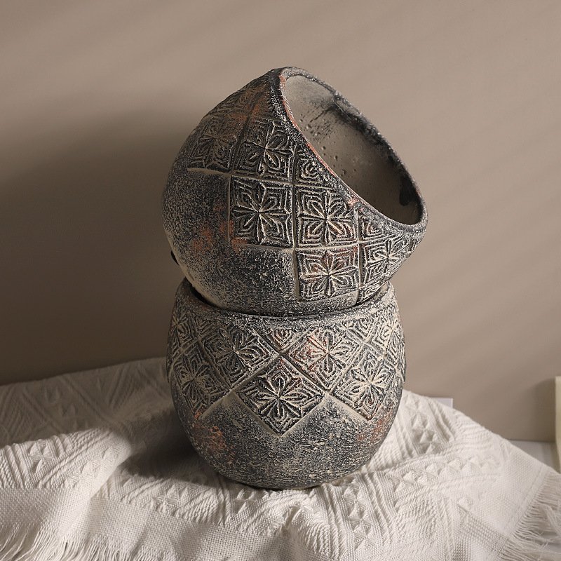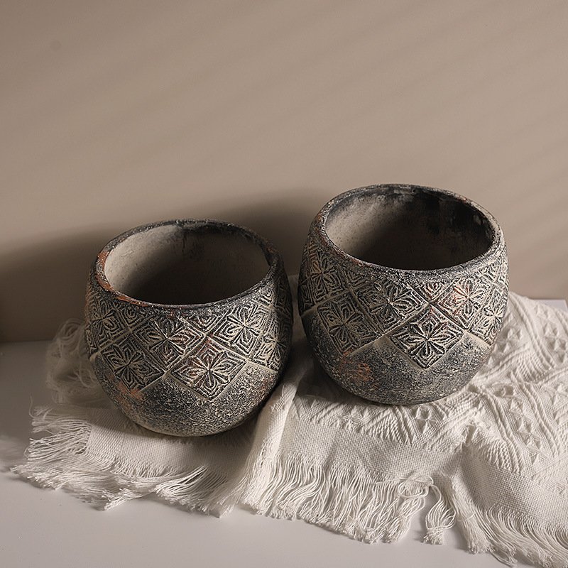 Vintage Tribal Embossed Planter | Distressed Terracotta Style